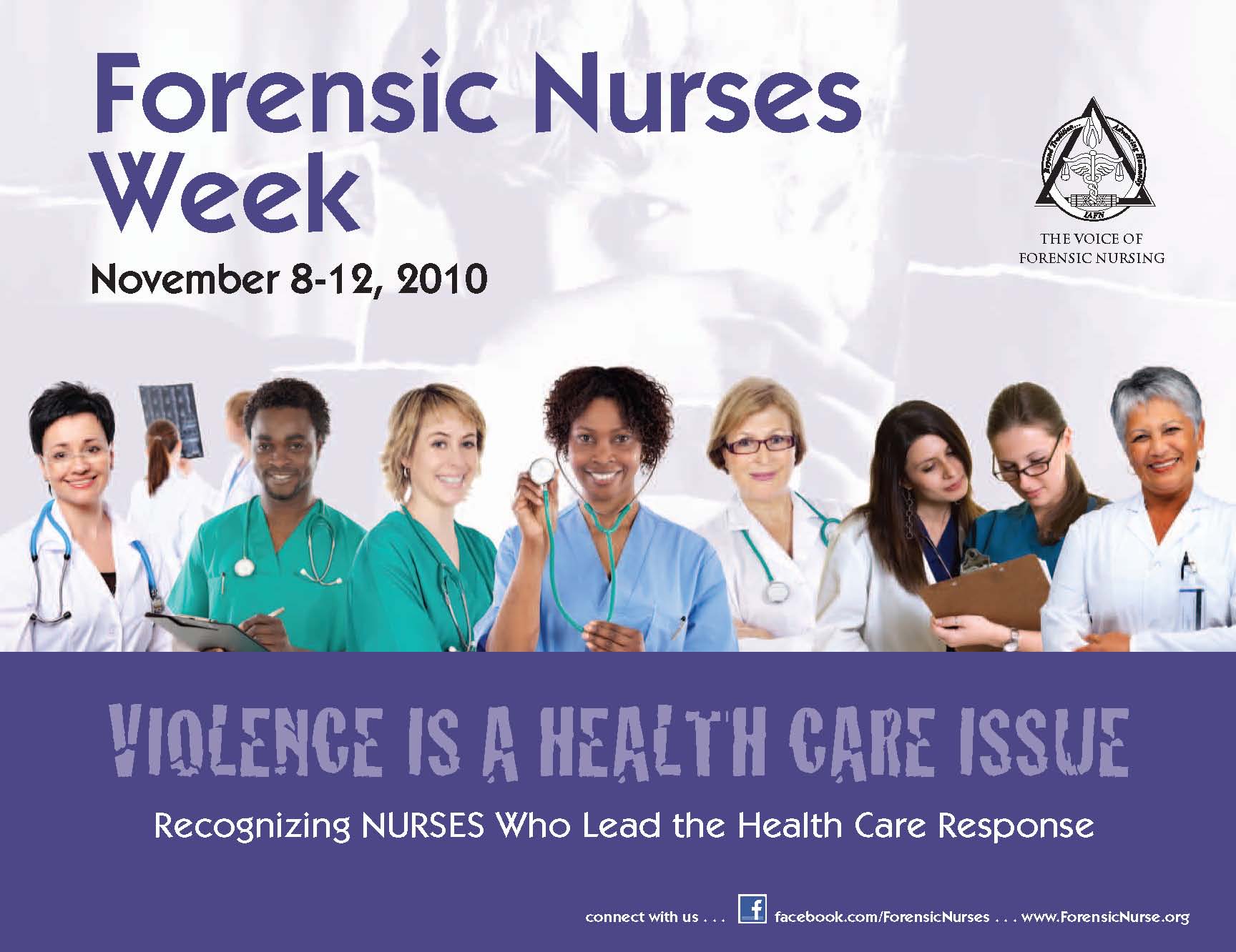 You can find templates for both general and community-specific press releases here. You can also download the graphic (as seen in this post) for your website or Facebook page, find templates for emails to policy makers, and much more, all over at IAFN’s Forensic Nurses Week page. My only complaint about the whole week is the designated color–it’s lilac and I look like puke in lilac. However, I’ll be commemorating the week amongst friends: 1st with a course up in Maine for clinicians and their collaborative partners, and ending the week with a talk at the OH chapter of the IAFN’s annual forensic nursing conference. Should be a great time.